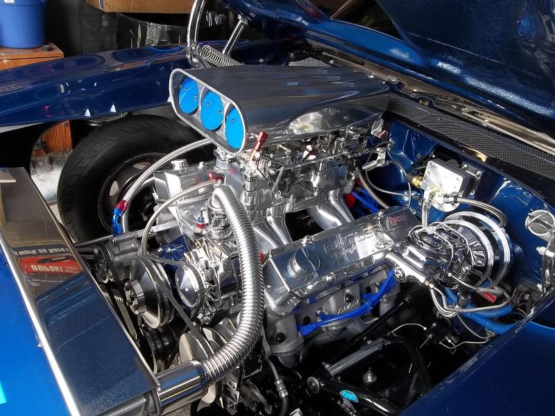Dave went with a 467 cu.in. Butler Performance Balanced Rotating Assembly and ported Edelbrock Round Port Heads. This engine also has a very nice hyd roller camshaft and runs on Pump Gas.