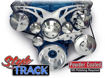 Pontiac 1967-69 FIREBIRD ONLY "Style Track" 1969 and Later Serpentine Aluminum Pulley, Bracket and Accessory Kit- Alternator, Water Pump, A/C Compressor, Power Steering Pump & Pulleys *INCLUDES ACCESSORIES /REQUIRES remote res.for PS pump(#450)* - requires 69.5" belt