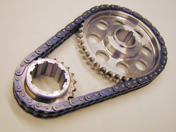 The Melling 3-350S is basically a stock replacement as the Melling 40408 timing chain features the double roller design with a 3 key way crank sprocket. Both sets also have cast timing gears.